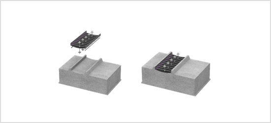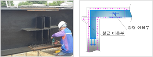 | 최대 부모멘트를 피하는 강형의 이음으로 라멘구조의 취약부인 우각부 구조 안전성 우수 | 기초폭원 최소화에 따른 하부물량 감소로 시공성 우수 | 벽체 하단부 분리재 적용으로 토공 및 기초의 물량감소에 따른 시공성, 경제성 우수 및 친환경적 공법 | 아치형상 제작이 가능하여 경관성 우수 |