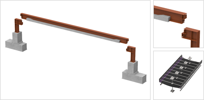 상부 거더는 장지간 저형고가 가능하여 다리 밑 공간 확보에 유리하고 경관성이 우수한 강합성 거더를 이용하며, 벽체하단과 기초의 분리구조를 통하여 하부 공사비 및 기초 공사비를 절감하는 하부 절감형 라멘교 공법